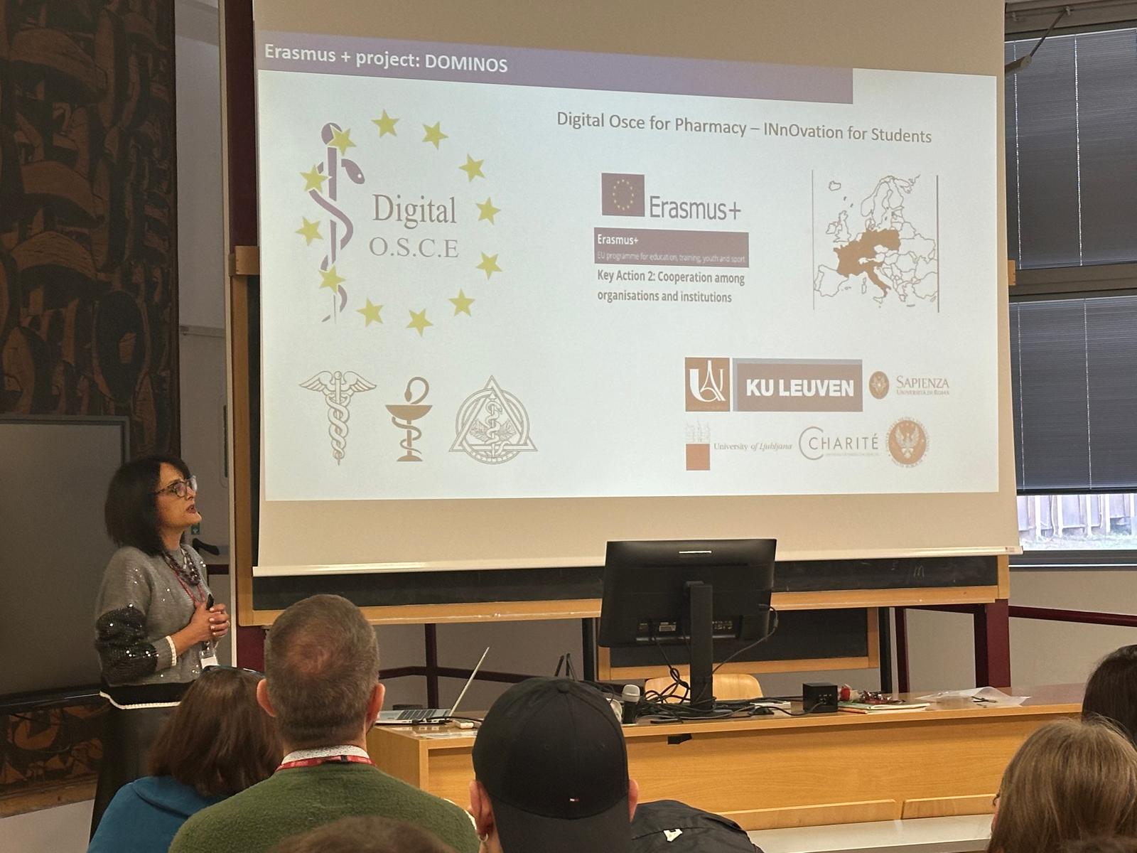 During the symposium "Exploring New Frontiers in drug Science and Education", which was focused on advancing research, education, and partnerships in the field of drug sciences, the Sapienza team in the Pharmacy area has promoted the DOMINOS project and its educational activities.  Indeed, with a focus on education, during the symposium the DOMINOS project, its platform and the digital tools used to prepare students with OSCE were showcased.